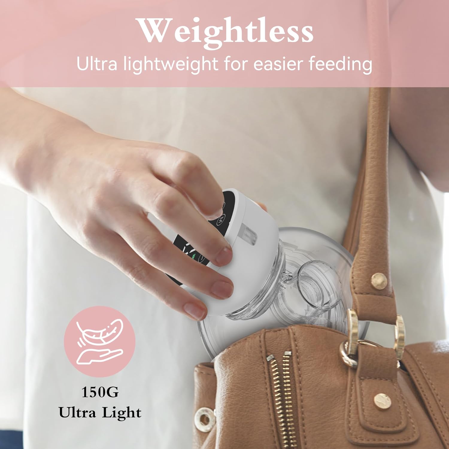 تصميم صغير وخفيف يمكن وضعه في حمالة الصدر دون إزعاج — يناسب روتين الأم اليومي.