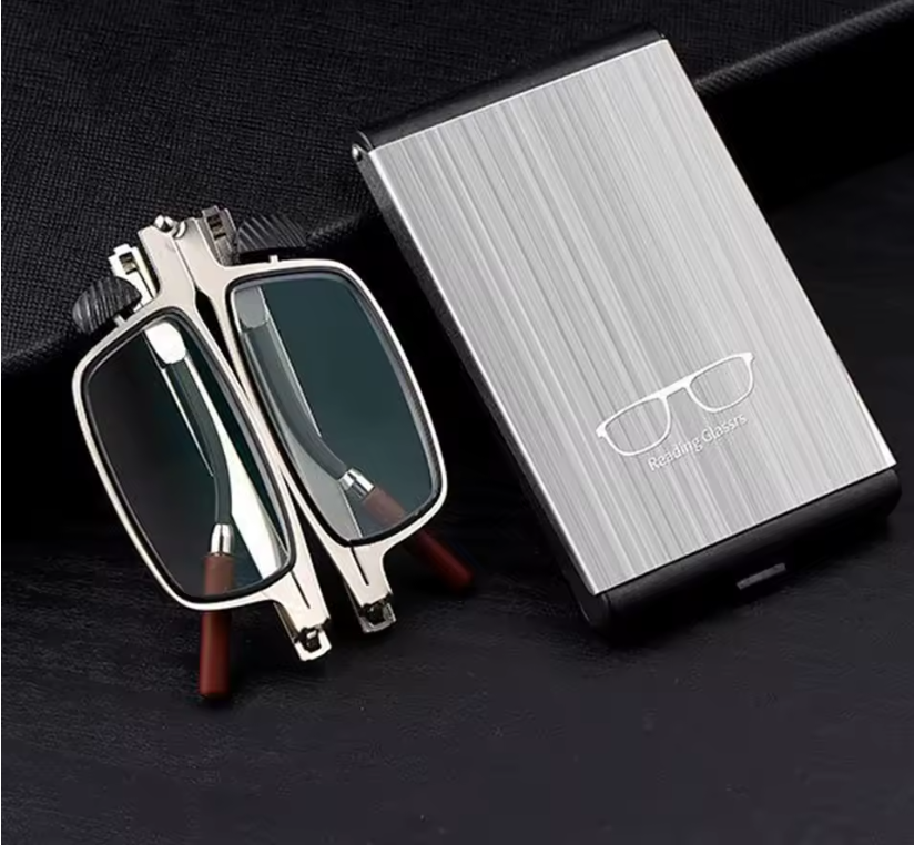 نظارات قراءة متقدمة مع حماية كاملة من الضوء الأزرق. مصنوعة من فولاذ مقاوم للصدأ مرن وتتميز بتصميم قابل للطي. مناسبة للرجال والنساء.